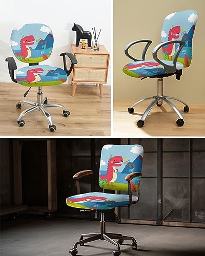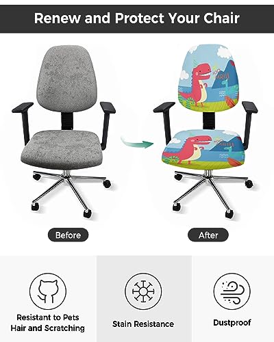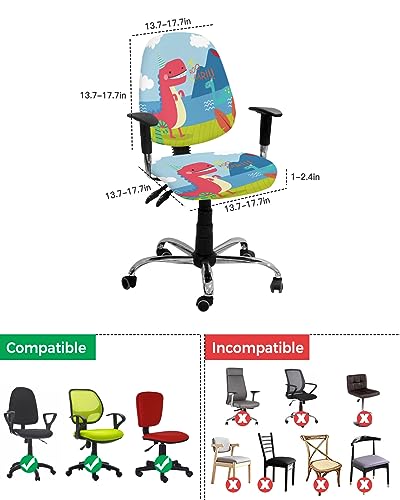 Office Chair Cover, Cute Cartoon Dinosaur Computer Office Chair Covers, Universal Elastic Stretchable Rotating Chair Slipcover, Removable & Washable Chair Protector