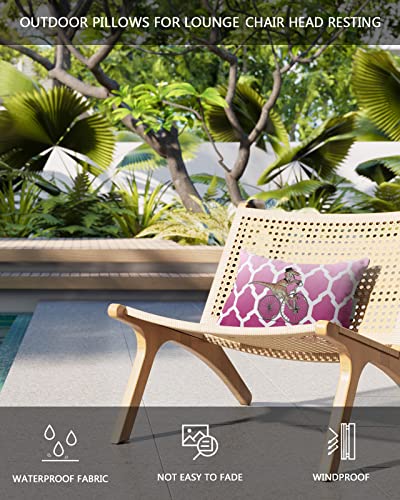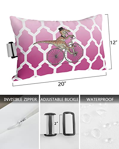 Outdoor Pillow for Lounge Chair with Strap & Insert Cartoon Dinosaur Ride Bike Recliner Head Pillow Ombre Navy Blue Moroccan Waterproof Headrest Patio Lumbar Pillows for Beach Pool Office Chair 12x20