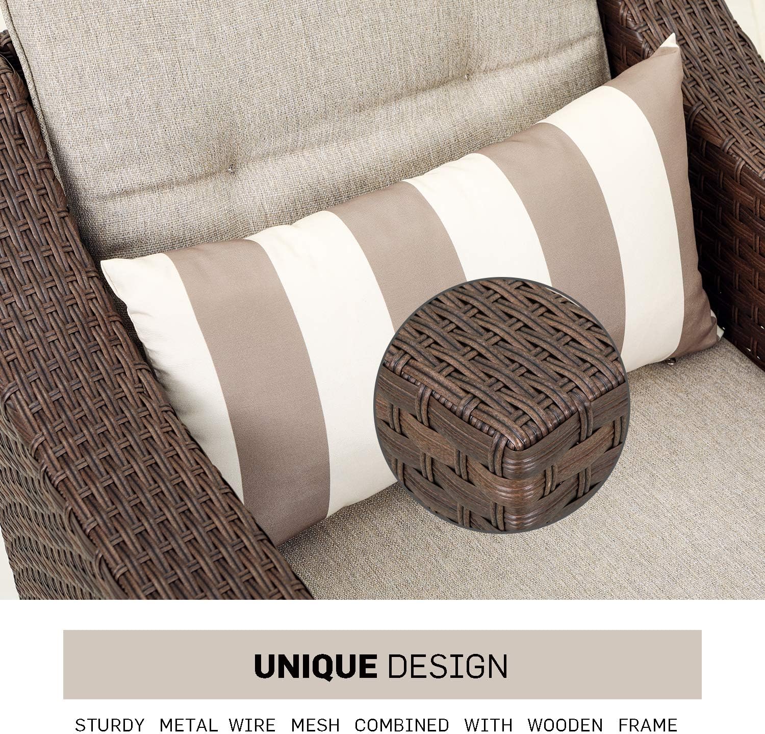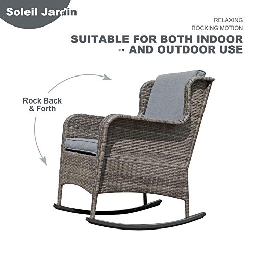 Soleil Jardin Outdoor Resin Wicker Rocking Chair with Cushions, Patio Yard Furniture Club Rocker Chair, Gray Wicker & Gray Cushions,Set of 2