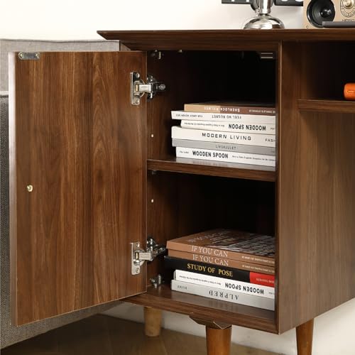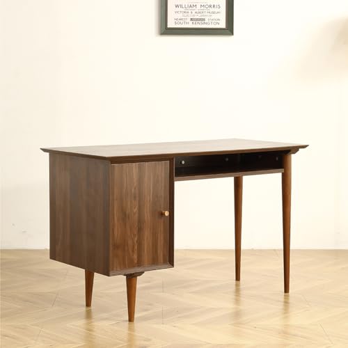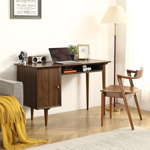 Student Kids Small Computer Desk with Solid Wood Legs Modern Mini Laptop PC Desks for Home Office Bedroom Small Spaces Walnut
