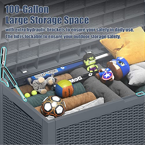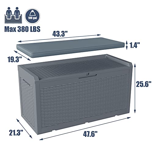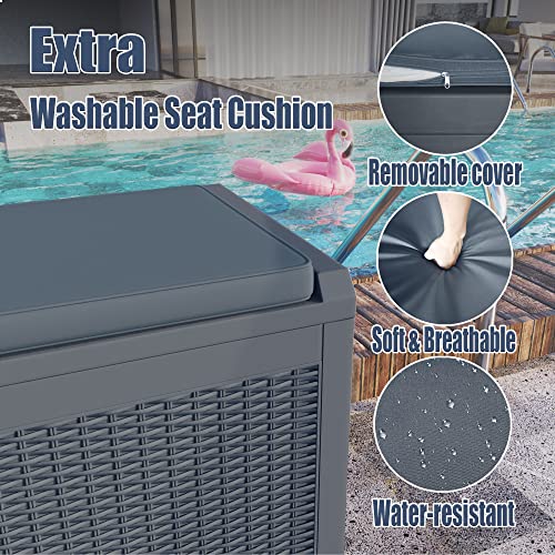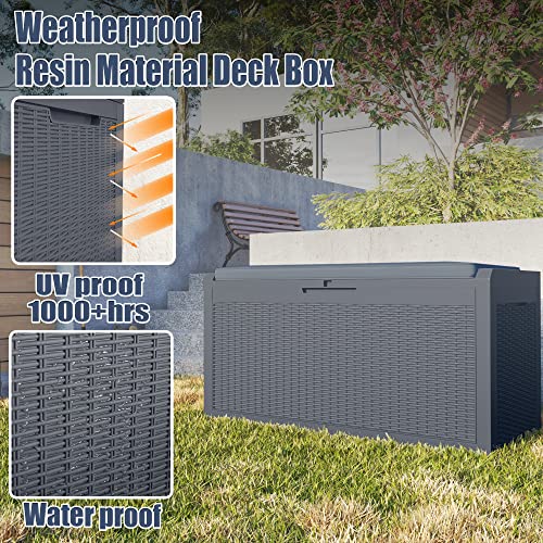 Greesum 120 Gallon Resin Deck Box Large Outdoor Storage for Patio Pillow, Garden Tools, Pool Supplies, Weatherproof, Lockable, Gray