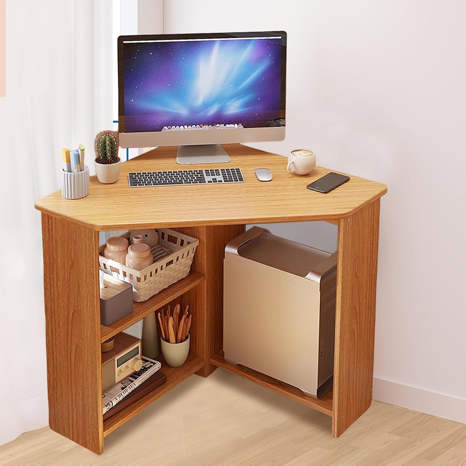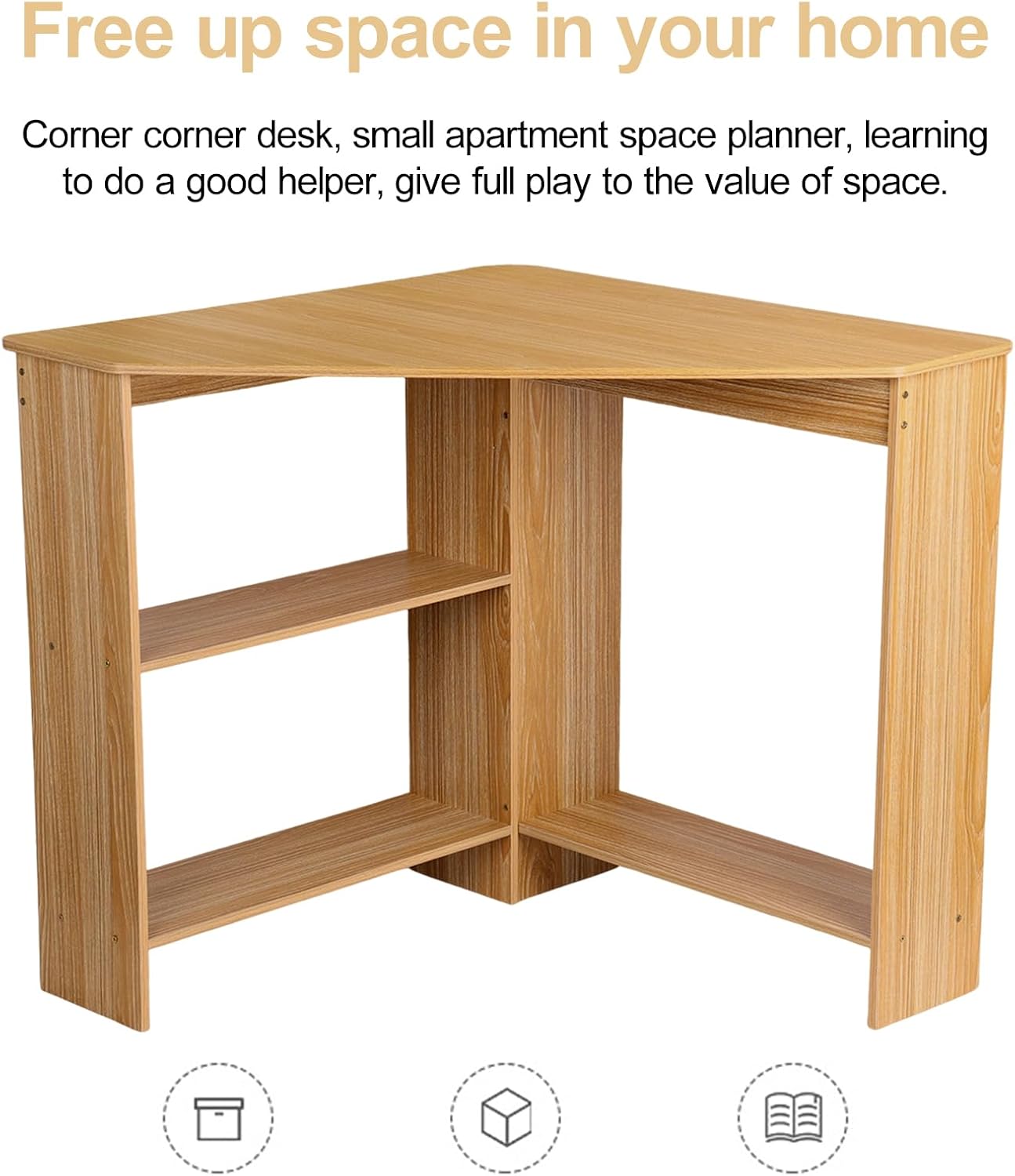 Corner Desk, 30.3" W x 29.2" H Small Computer Desk with Open Storage Shelves, Corner Computer Desk for Small Space, Small Triangle Table for Home Office Bedroom, Light Brown