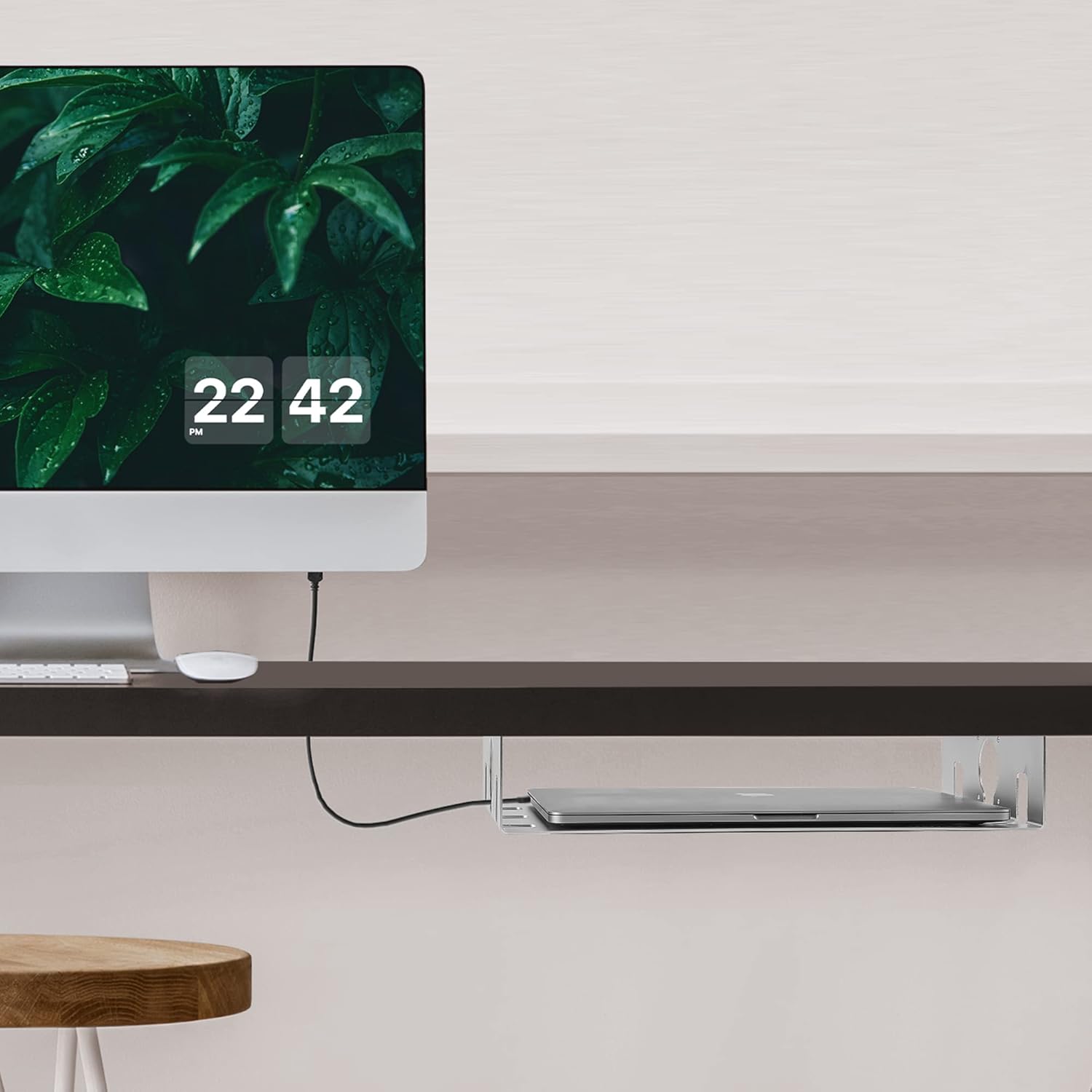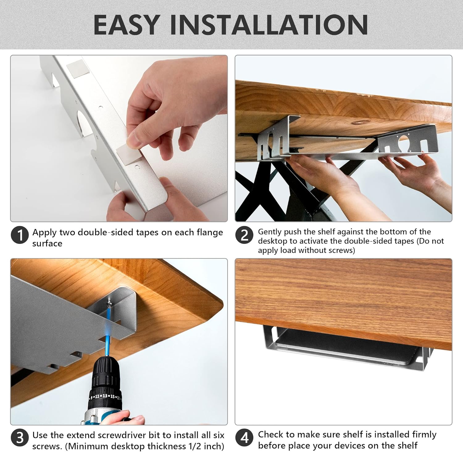 Under Table Shelf - Clear Under Desk Shelf for Laptop, PC,Mac Mini, Computer, and Gadget. Under Table Mount Shelf, Storage, Desk Hanging Organizer, Desk Laptop Holder, PC Desk Mount