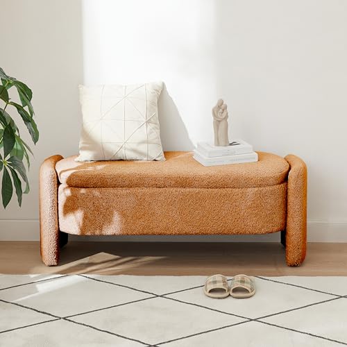 Storage Bench, Ottoman with Large Storage Space Chenille Fabric Ottoman benches Upholstered Footstool for End of Bed, Living Room, Entryway Grey