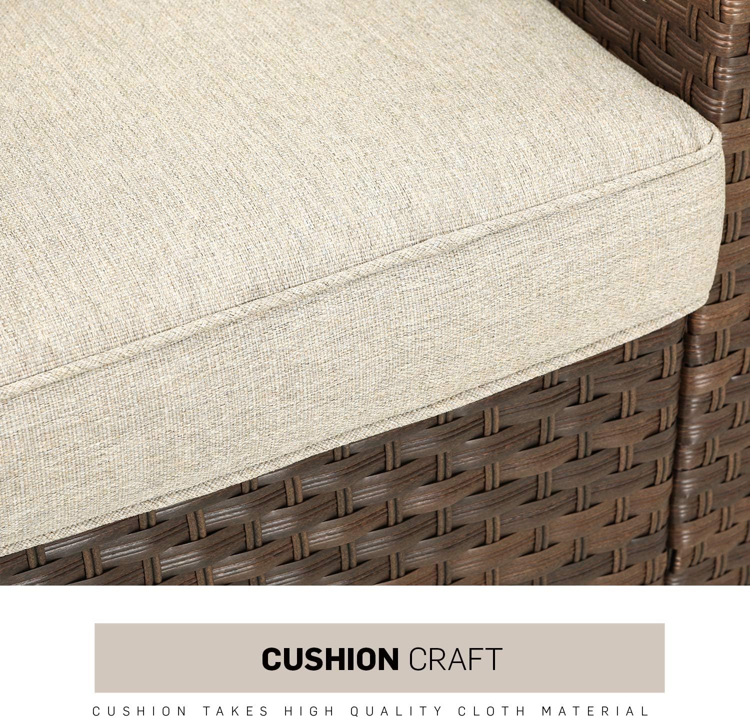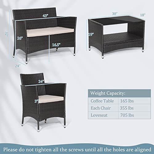 Tangkula 4 Pieces Patio Furniture Set, Patiojoy Outdoor PE Wicker Conversation Set with Soft Cushions and Tempered Glass Tabletop, Outdoor Garden Furniture Set with 2-Tier Coffee Table (Brown)