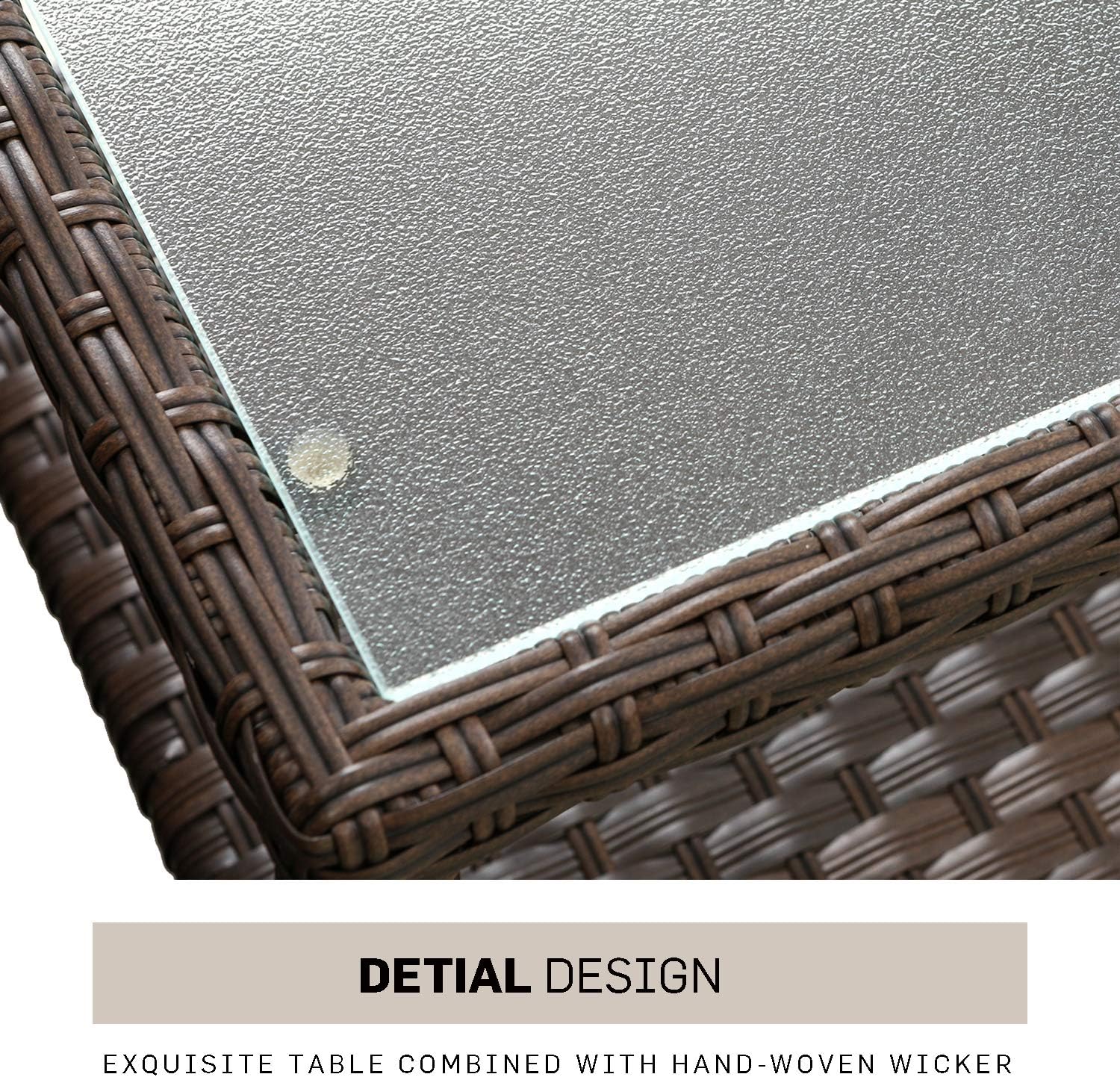 SOLAURA 3-Piece Patio Bistro Set Brown Rattan Outdoor Furniture, Patio Chairs with Glass-Top Coffee Side Table & Seat Cushions, for Garden, Front Porch, Balcony