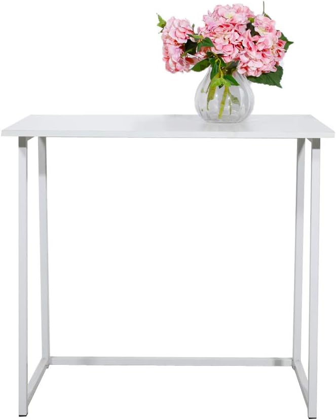 Folding Desk, 31.5" Small Desk for Small Spaces, Easy Assemble Foldable Computer Desk for Laptop, Mini Portable Working Table Narrow Wooden Writing Workstation for Home Office, White