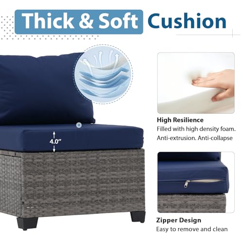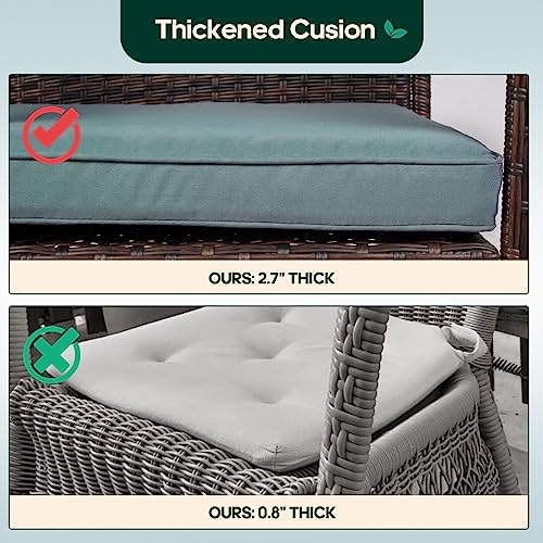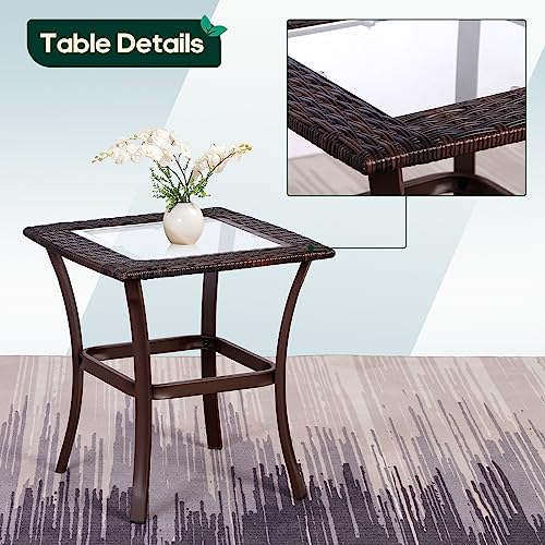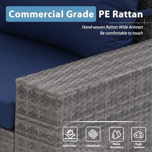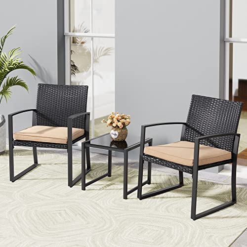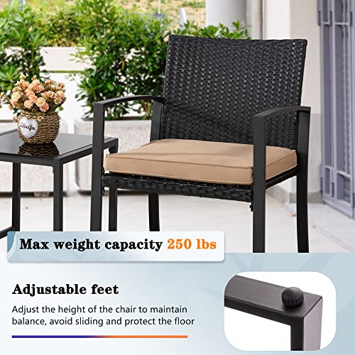 Shintenchi 3 Pieces Outdoor Patio Furniture Set, Modern Wicker Bistro Set, Conversation Rattan Chair of 2 with Coffee Table for Yard Porch Poolside Lawn(Blue Cushion)