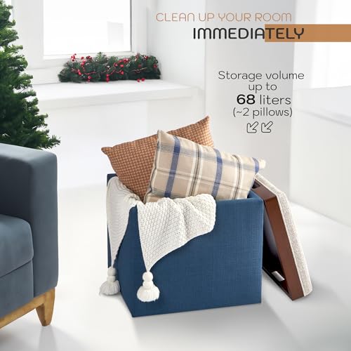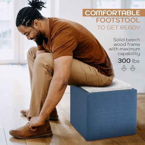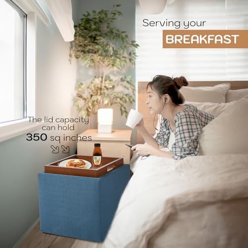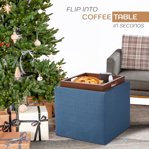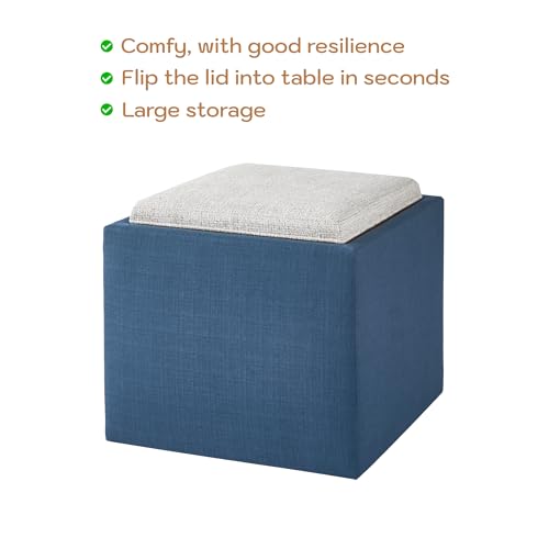 All Navy Blue Teddy Storage Ottoman, 18.5" Cube with Tray, Comfy Foot Rest, Multi-Purpose Uses, Home Decor Space Saving Solution