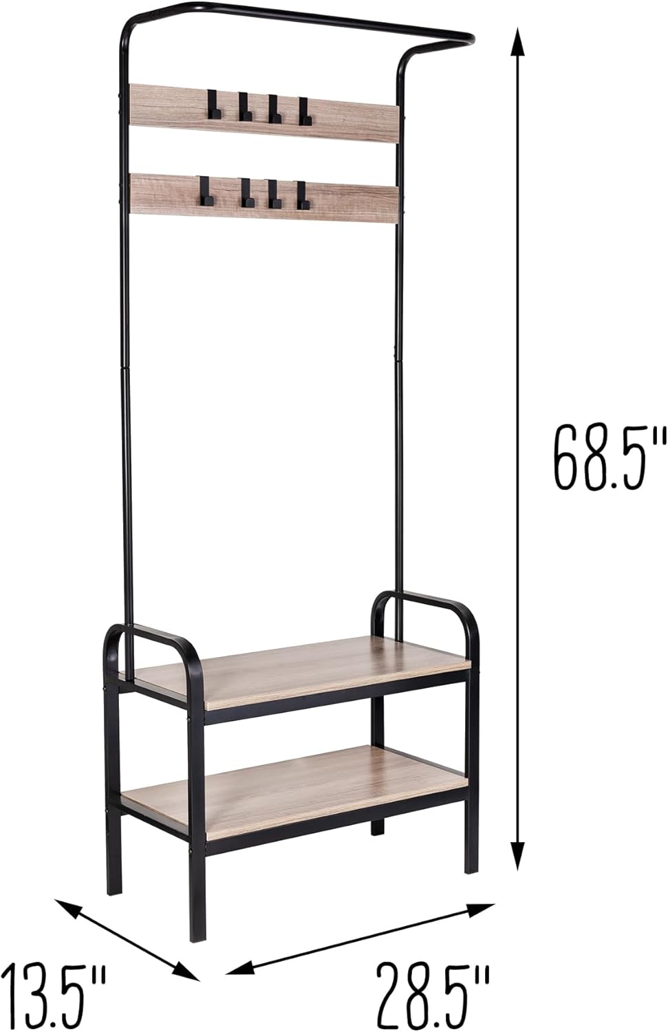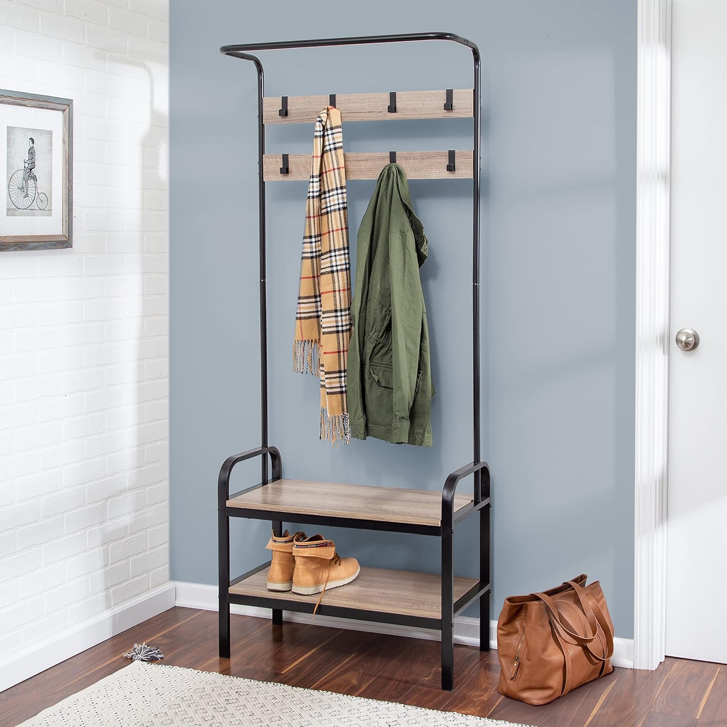 Honey-Can-Do Entryway Bench with Coat Hooks and Shoe Storage, Willow Gray SHF-08746 Black