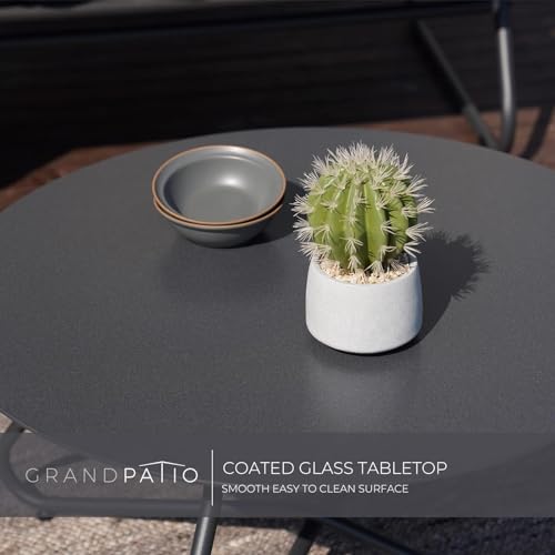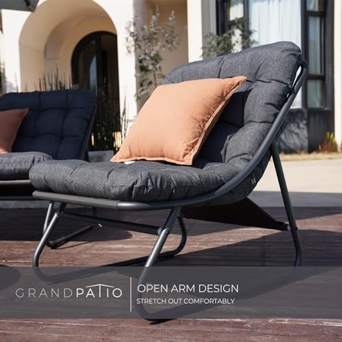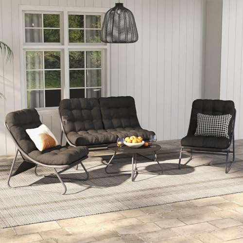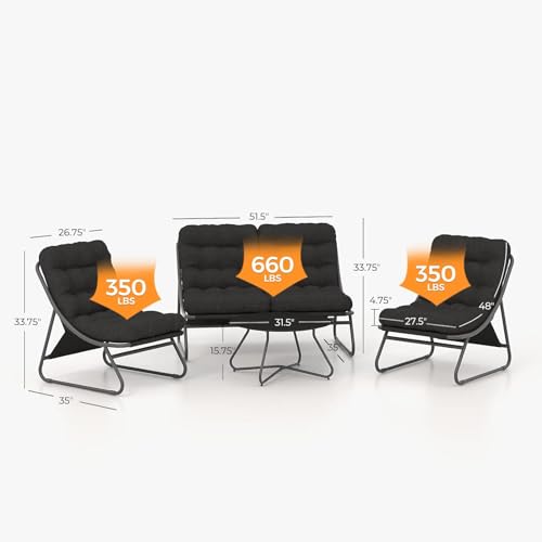 Grand patio Outdoor & Indoor 4-Piece Conversation Set E-coated Patio Furniture, Removable Padded Olefin Cushion, Deluxe Enlarged Seat, Coffee Table, Charcoal Grey