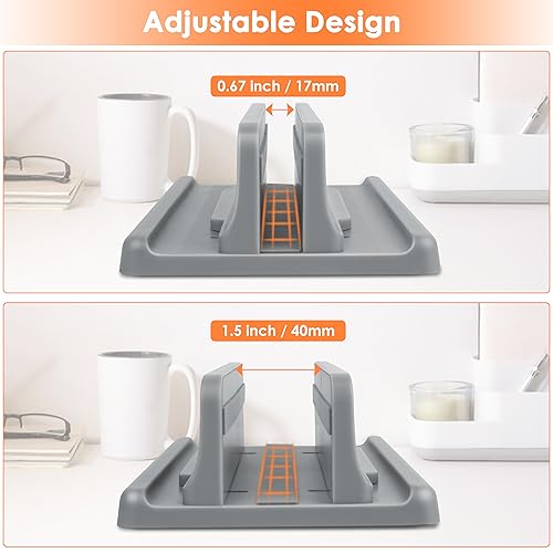 Vertical Laptop Stand, ABS Plastic, Adjustable Dock up to 15 inch PC Desk Space Saver for MacBook/Surface/iPad/Mini PC (Space Grey)