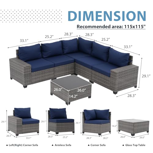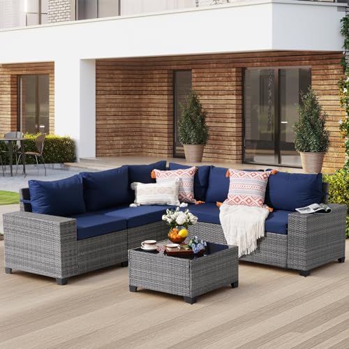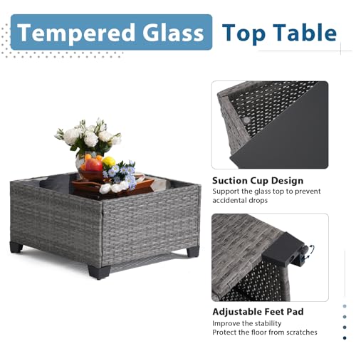 JOIVI Outdoor Patio Furniture Sets, All Weather Outdoor Sectional Patio Sofa, Wicker Rattan Outdoor Couch Patio Set with Cushions, Tempered Glass Table, 3-Piece Outdoor Seating Sofas (Silver-Gray)