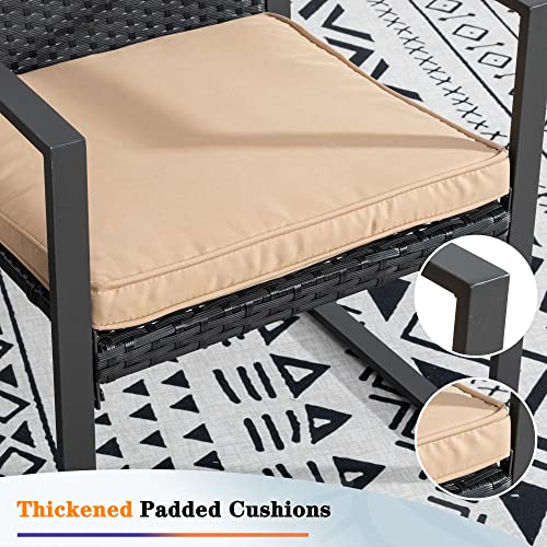 Outdoor Rattan Wicker Rocking Chair 3 Pieces Patio Conversation Furniture Bistro Sets with Side Table and Cushions for Porch Garden and Balcony