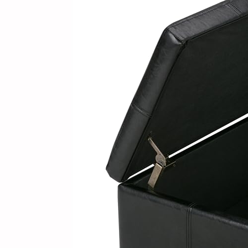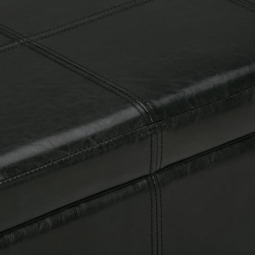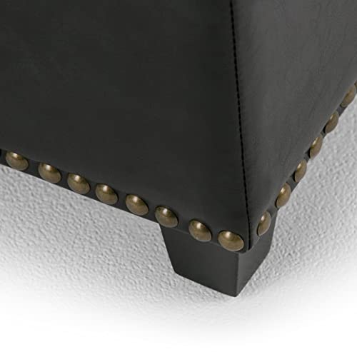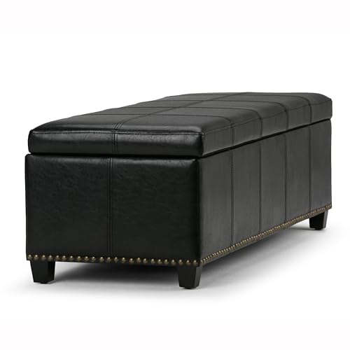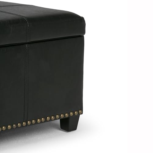 SIMPLIHOME Kingsley 48 inch Wide Transitional Rectangle Lift Top Storage Ottoman in Upholstered Radicchio Red Faux Leather with Large Storage Space for the Living Room, Entryway, Bedroom