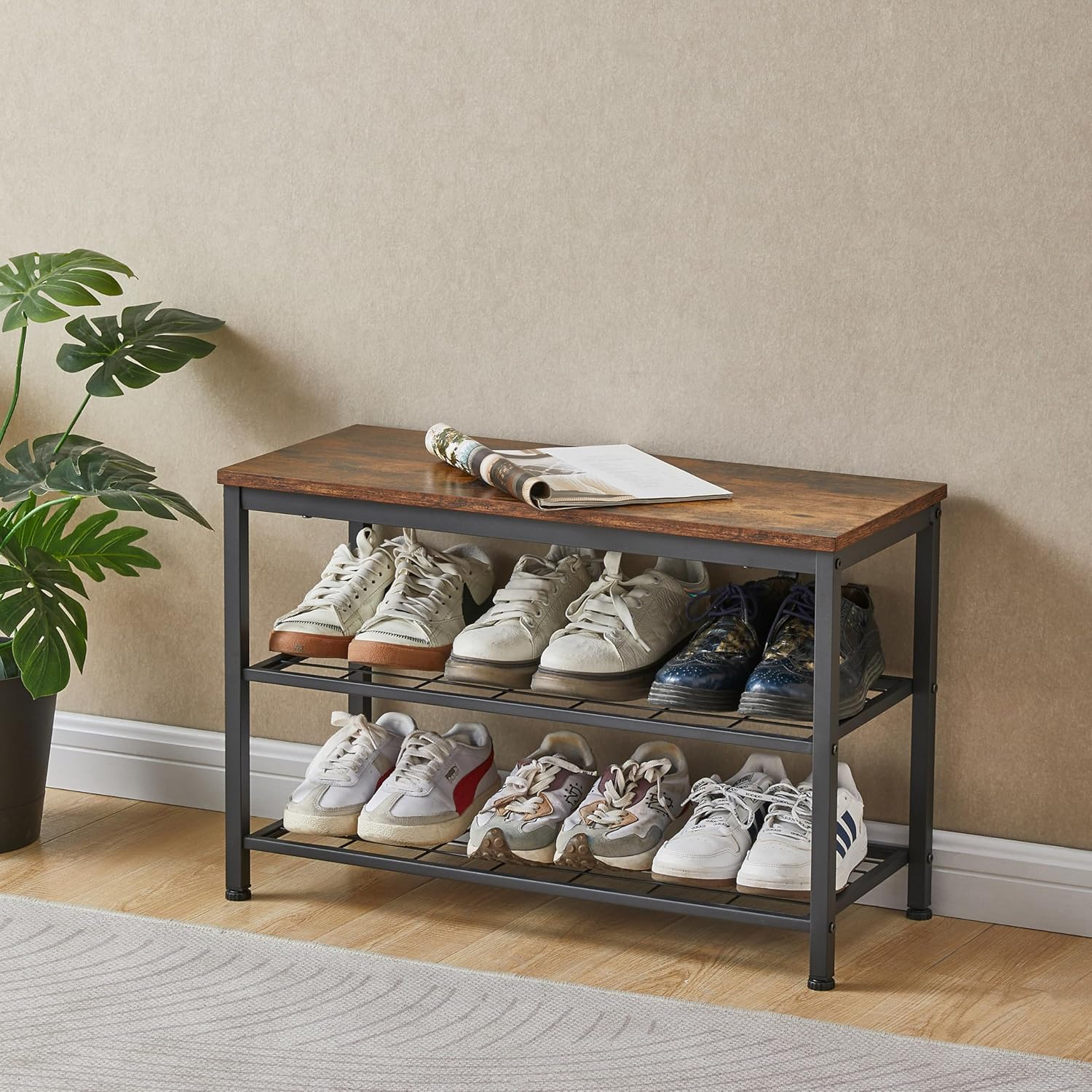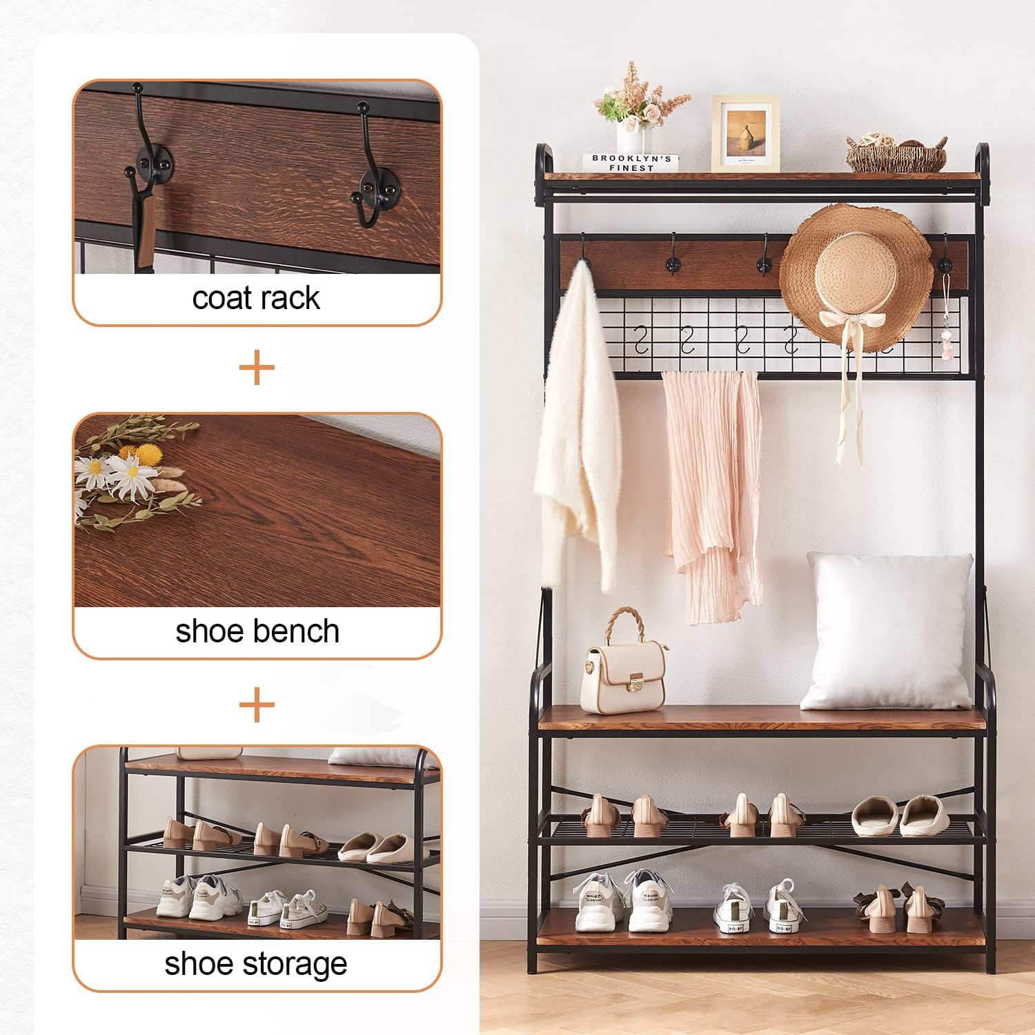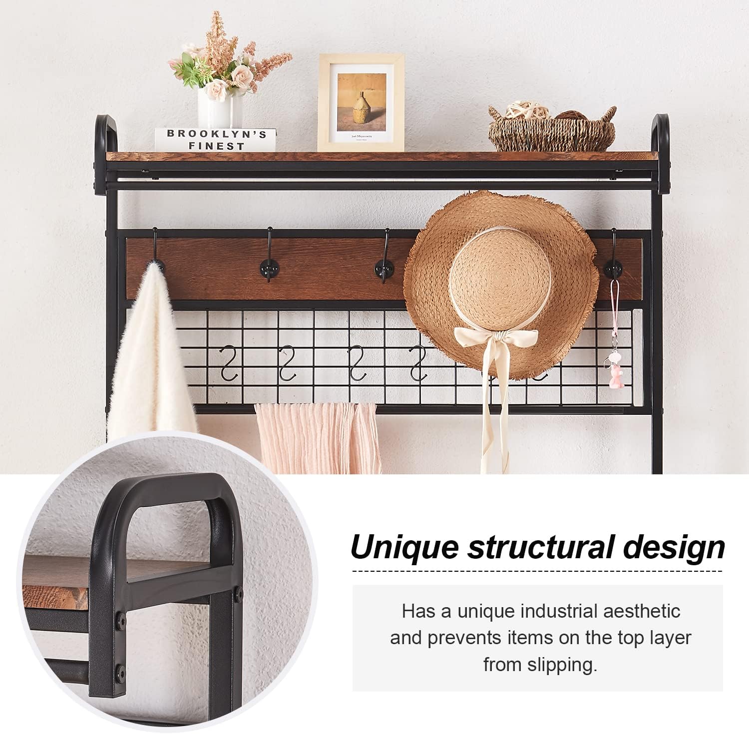 HOMISSUE Hall Tree, Coat rack with Shoe Bench, Industrial Entryway Bench with Coat Rack, 5-In-1 Hall Tree with 11 Hooks and 2 Hanging Rods for Entryway, Hallway (Rustic Brown)