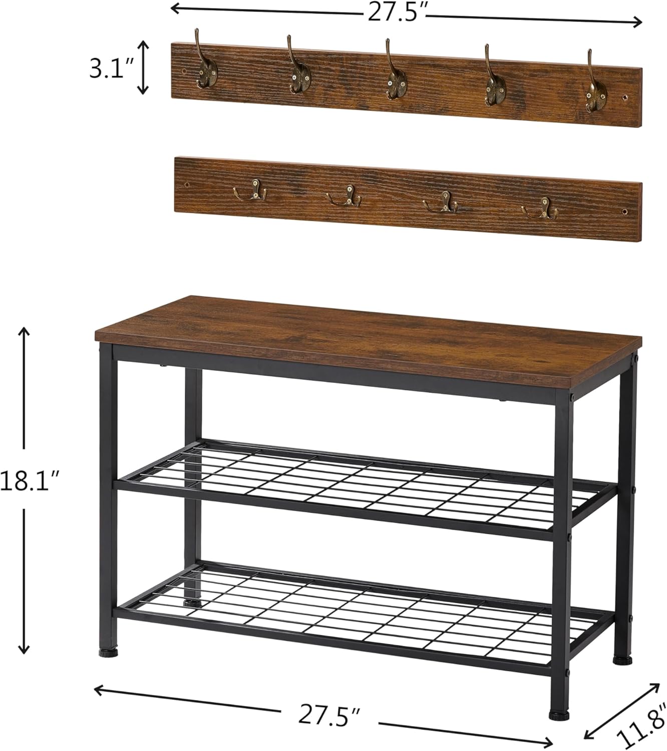 Coat Shoe Rack Bench Set,Entryway Shoe Rack Bench with Coat Hooks,Hall Tree Coat Rack