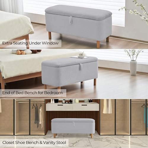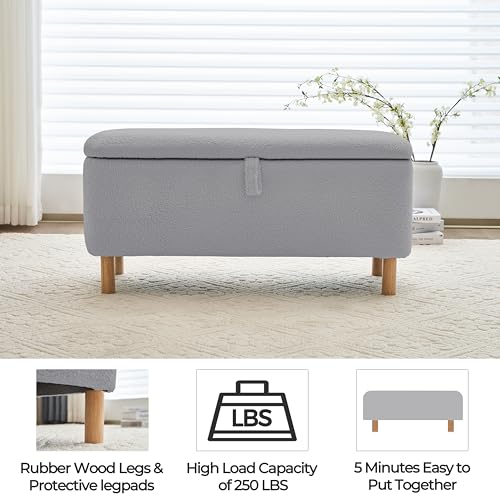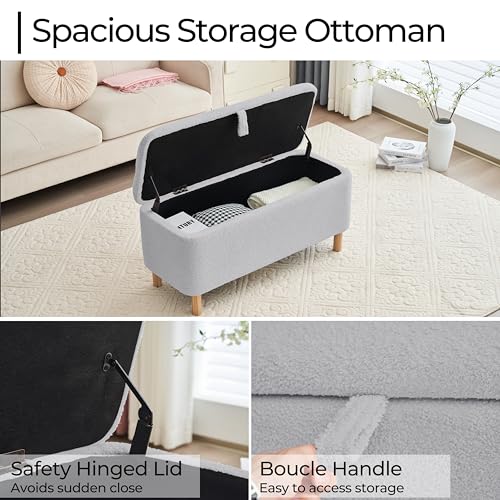 Boucle Storage Ottoman Bench for Bedroom end of Bed, Sherpa Upholstered Shoe Seat Storage Beach for Entryway Bed Foot, Rectangle Padded Blanket Chest Cute for Living Room for Kid, Pink