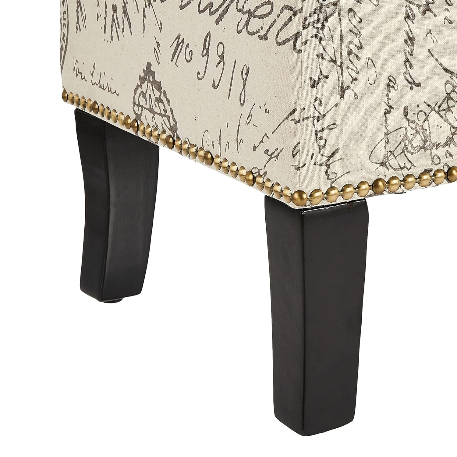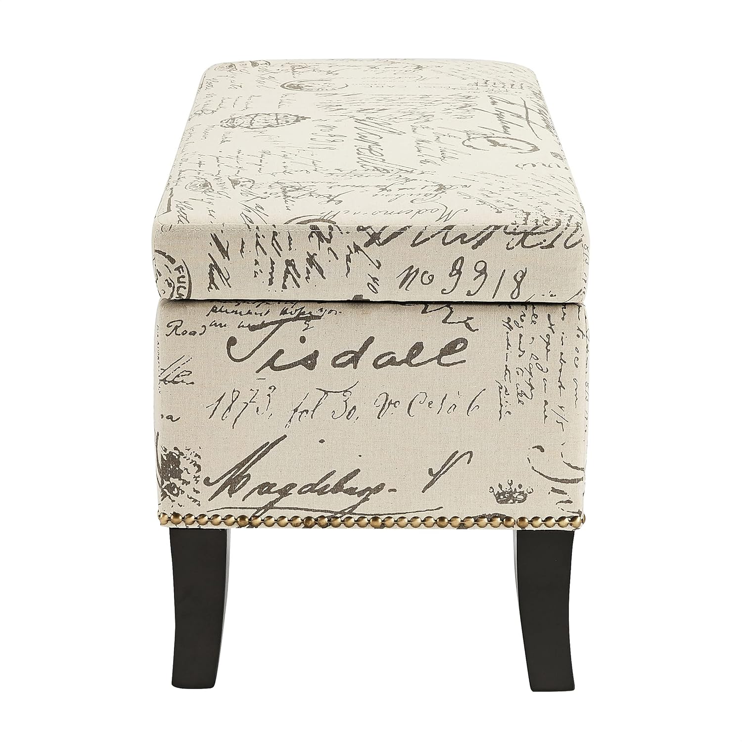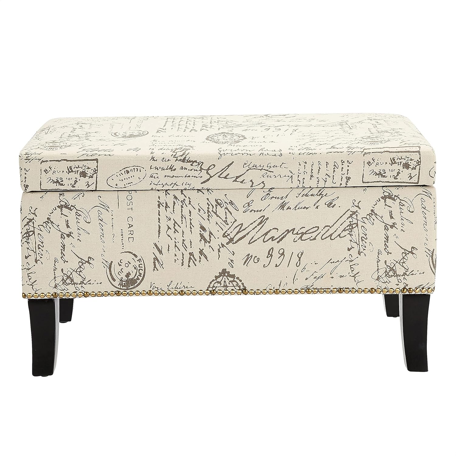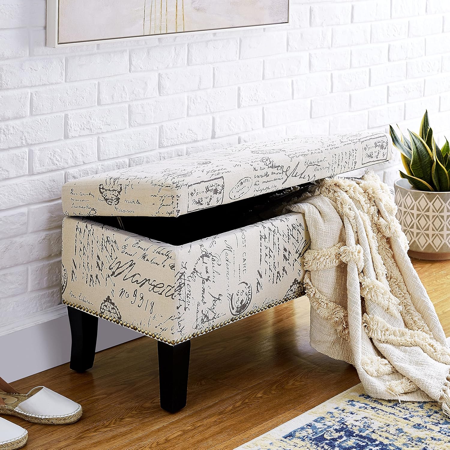 FIRST HILL FHW Dream Lift-Top Storage Ottoman Bench with Fabric Upholstery,Brown Script
