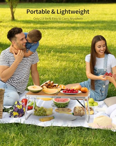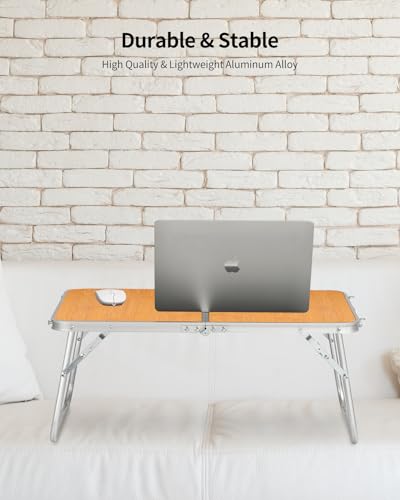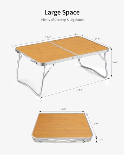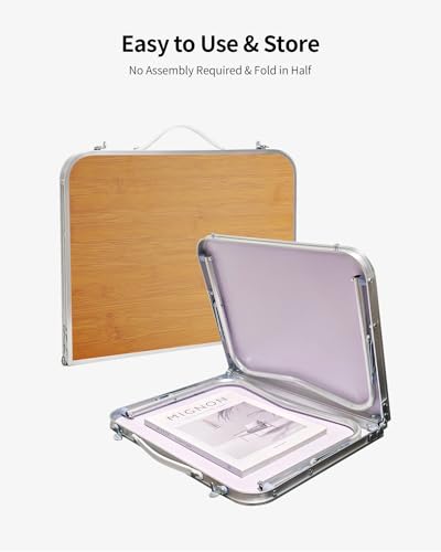 Folding Laptop Table, Bed Table Lap Desk, Breakfast Tray Table, Portable Mini Picnic Study Reading Drawing Table, Folding in Half with Inner Storage Space (Bamboo)