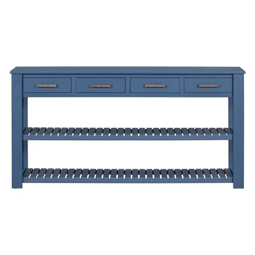 Merax Entryway Console Table with Storage 4 Drawers and 2-Tier Bookshelf, Accent Furniture for Living Room Entry Hall Foyer, Black