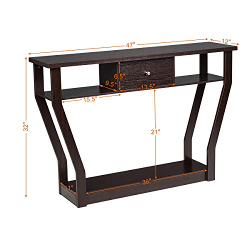 Safeplus 47" Wooden Entryway, Accent Cosole Tables Table with Drawer and Shelf for Living Room Hallway