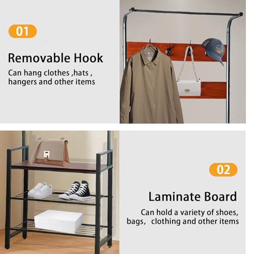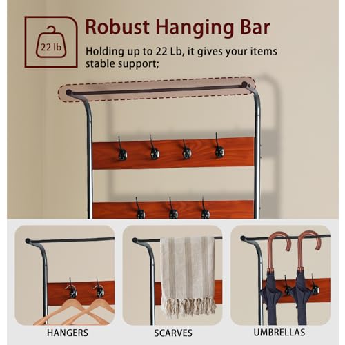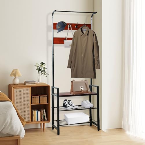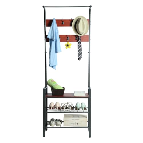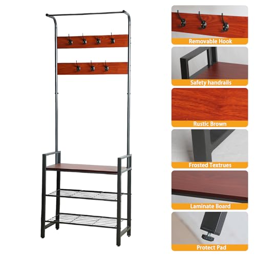Coat Rack, Entryway Hall Tree with Shoe Bench, 3-in-1 Design Coat Rack Shoe Bench with 14 Hooks and 3-Tier Shelves, Freestanding Coat Tree for Living Room, Bedroom. (white)