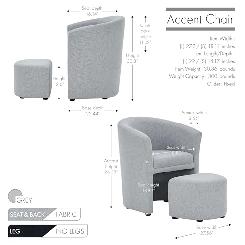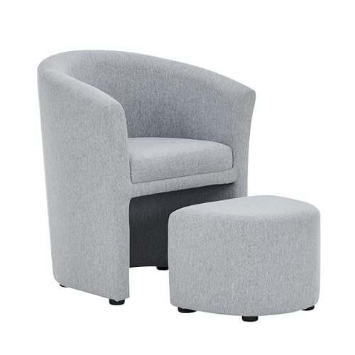 Porthos Home Adela Barrel Accent Chair with Ottoman, Fabric Upholstery, Ergonomic Circular Back and Armrests, Space-Saving Nesting Design is Suitable for Home Studios and Cozy Offices