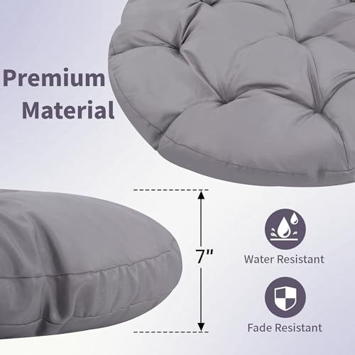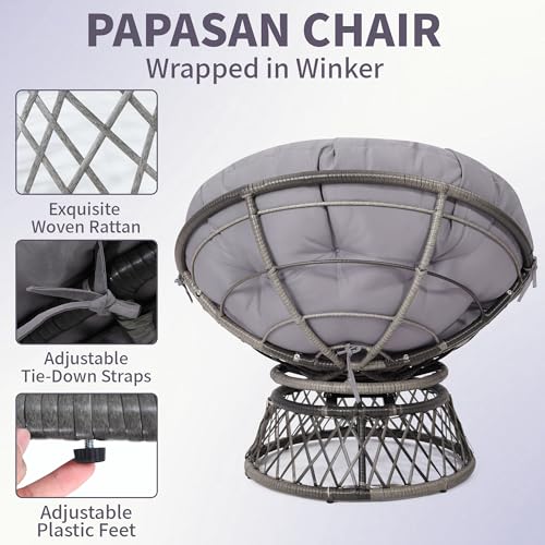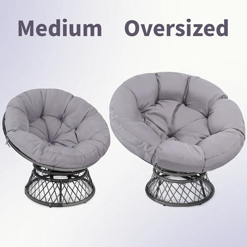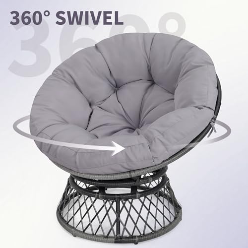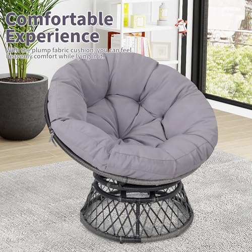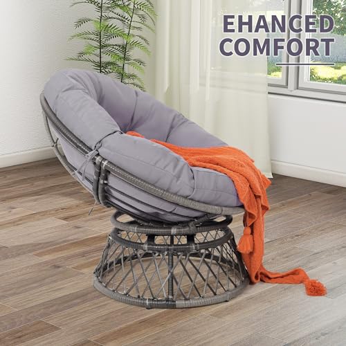 37" Wicker Papasan Circle Chair, 360° Swivel Living Room Chair, Indoor Outdoor Rattan Chair with Thick Cushion, Ideal for Teenagers, Kids, Black Frame with Blue Cushion