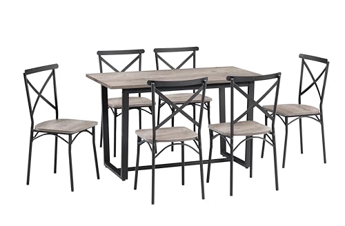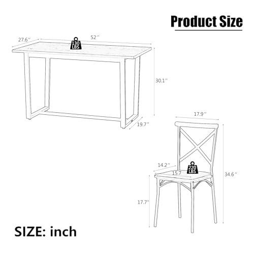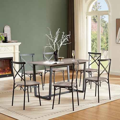 LUMISOL 7 Piece Dining Table Set, Heavy Duty Metal Dining Table Set with Faux Marble Tabletop, Kitchen Table Set with 6 Chairs for Kitchen, Dining Room, Living Room, Space-saving, White+Brown
