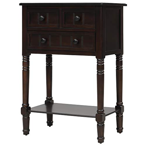 Narrow Console Table, Retro Slim Sofa Table with Three Storage Drawers and Bottom Shelf for Living Room Furniture, Easy Assembly (Navy)