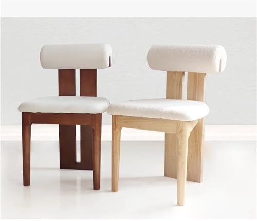 Modern Dining Chairs Set of 2, Retro Simple Dining Chair - Solid Wood, Makeup Lamb Cashmere, Sofa Chair Space-Saving Dining Chair (Color : Walnut Color)