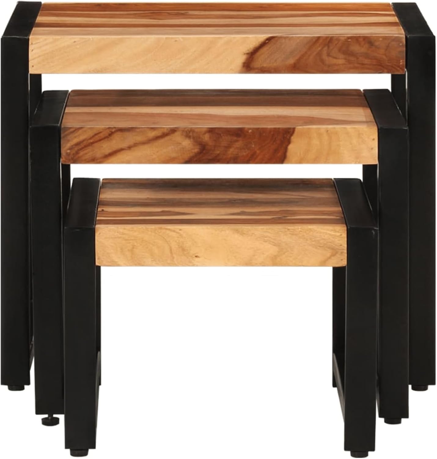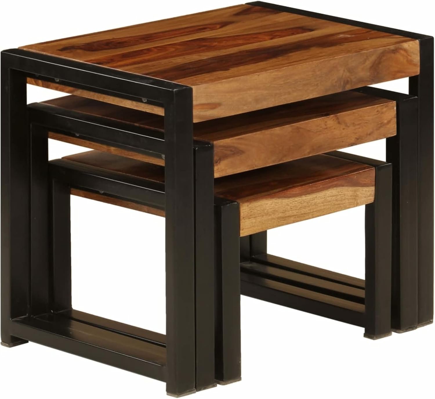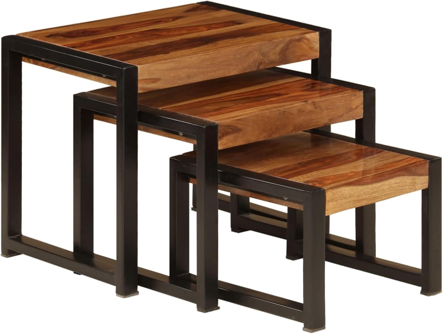Tidyard 3 Piece Nesting Table Set Sheesham Wood Top Coffee Tables Sofa and Couch End Side Table Steel Legs for Living Room, Bedroom, Home Office Furniture