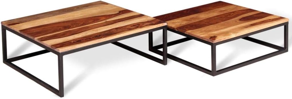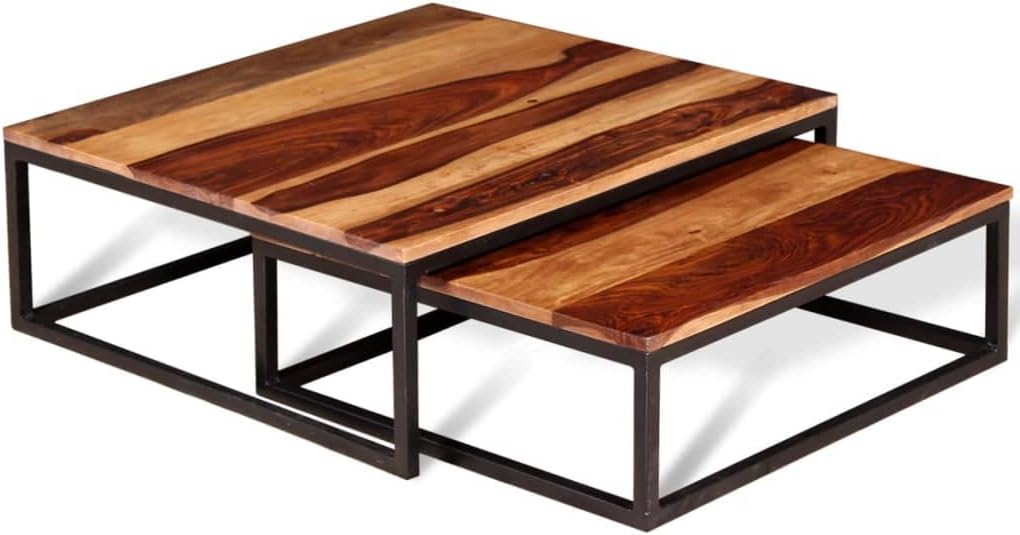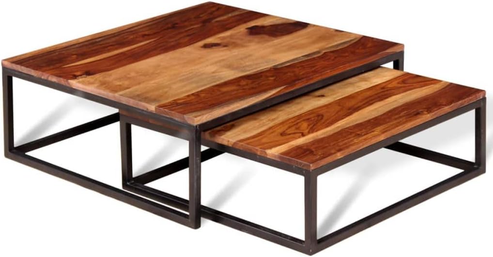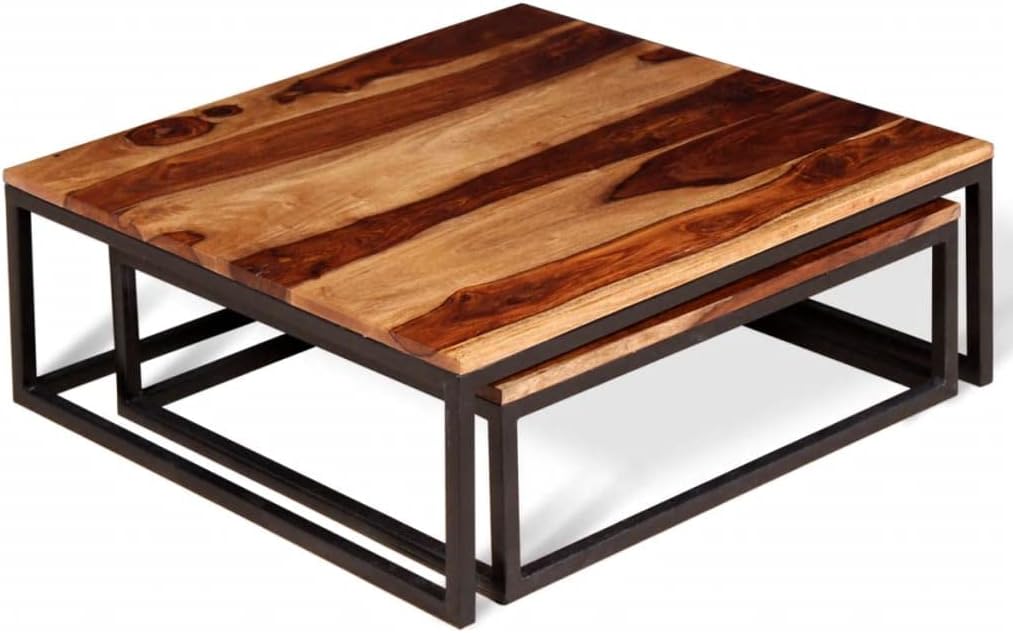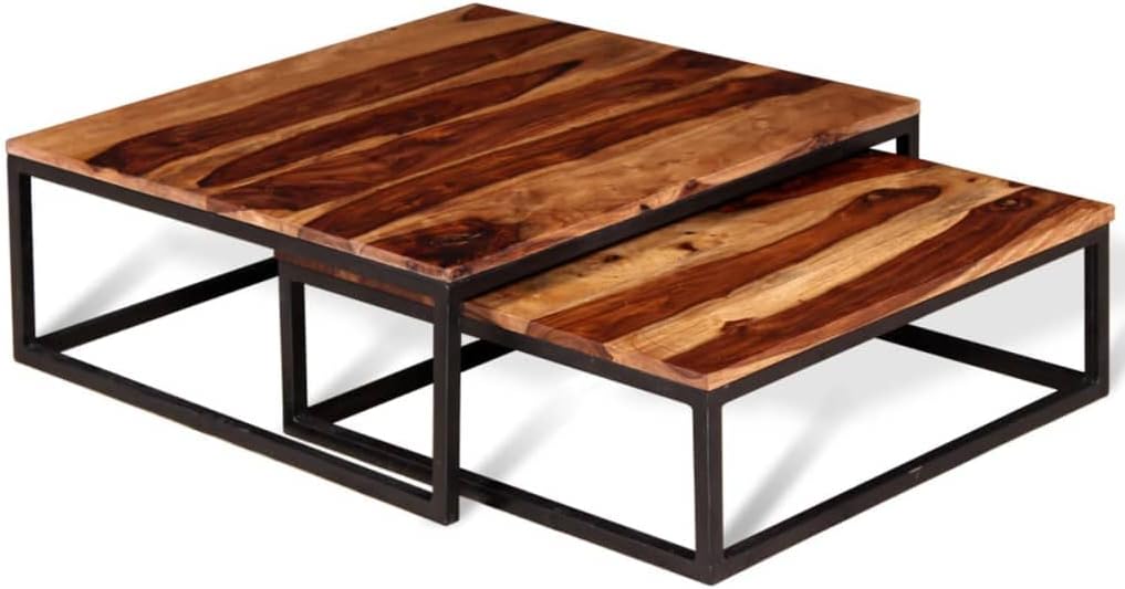 Industrial Style Two Piece Nesting Coffee Table Set,Living Room Table,Sofa Table,Cocktail Table,for Living Room,Reception Room,Office,Apartment,Solid Sheesham Wood