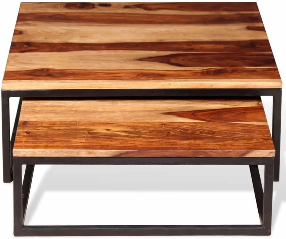 Retro Style,Coffee Table,Center Table,Side Tables,Sofa Table,Cocktail Table,Living Room Table,Storage Rack,for Bedroom,Living Room,Dining Room,Office,Cafe,2Piece Nesting Set Solid Sheesham Wood
