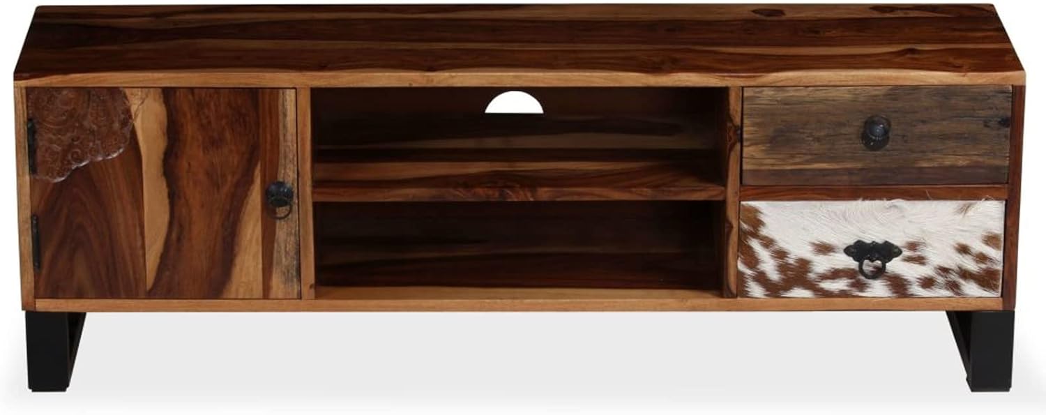 Tidyard TV Stand with Door Cabinet, 2 Drawers and Storage Shelf Sheesham Wood Television Cabinet Steel Frame Sofa End Table for Living Room Home Furniture 47.2 x 11.8 x 15.7 Inches (W x D x H)