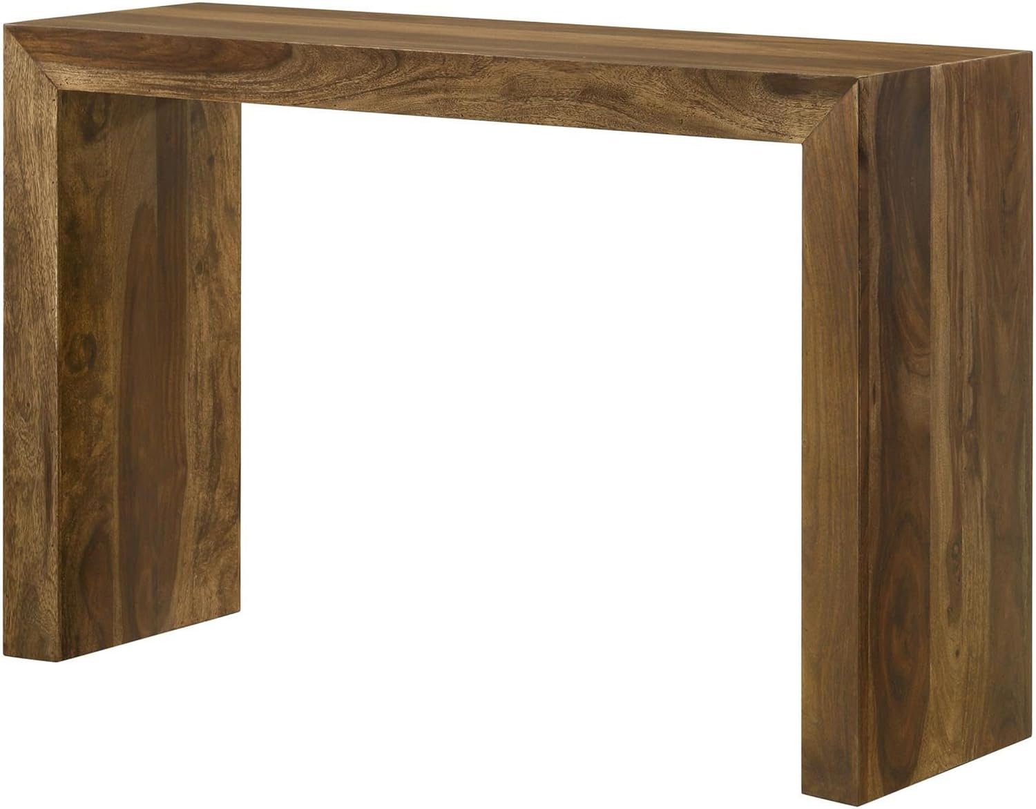 Benjara ODY 34 Inch Console Sofa Table, U Shaped, Sheesham Wood, Auburn Brown