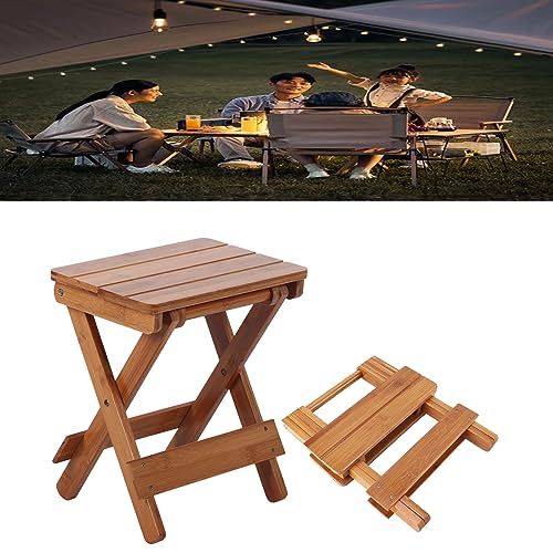 Foldable Bamboo Stool Outdoor Camping Stool Fishing Chair Stool Step Stool Wood Stool Folding Wood Chair for Living Room Bathroom Bedroom Garden Study Balcony (2 Pcs)