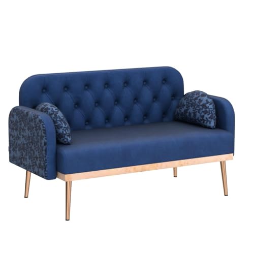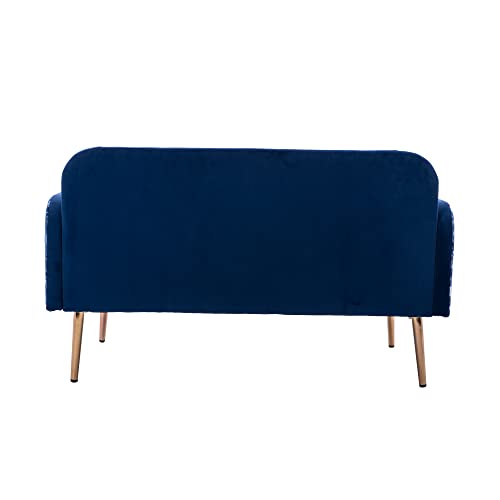 Yoglad Velvet Small Sofa, Upholstered Loveseat with Golden Metal Legs, Accent Couch with Cute Pillows, Small Couch with Solid Wood Frame, for Living Room, Bed Room, Dorm, 55" Inch (Black)