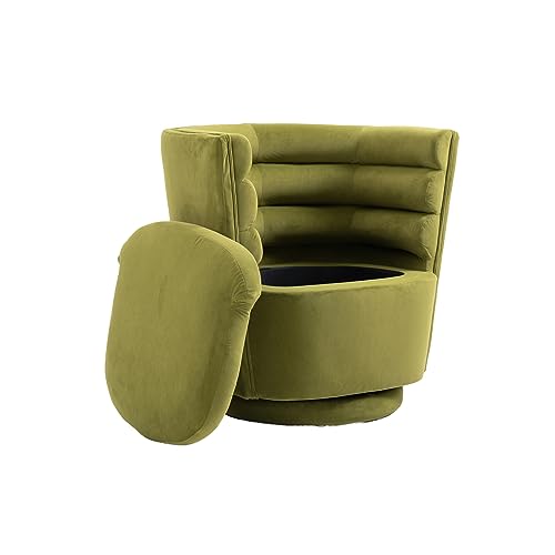 Swivel Barrel Accent Chair, Comfy Round Sofa Chair with Storage Ottoman, Modern Upholstered Single Sofa, Leisure Arm Chair for Living Room, Hotel, Bedroom, Office, Lounge