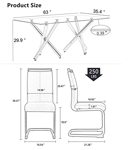 Modern Dining Table Set for 6, 7-Piece Glass Dining Room Set w/ 63in Rectangle Dining Table & 6 Faux Fur Chairs, Space-Saving Kitchen & Dining Room Set for Home, Living Room, Small Space