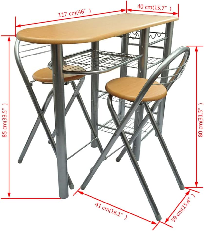 Piece Wood Round Table,Bar Table Set with Storage Shelves, Space Saving Table for Kitchen/Dinning Room/Living Room/Bedroom/Office,Breakfast Bar/Table and Chairs Set Wood