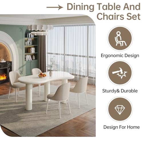65.9" White Dining Table & Kitchen Table Set for Living Room,1 Large Table with 4 Cushion Chairs,Cloud Dinner Table for 4-6 People,Space Saving Console Table,Long Sofa Table