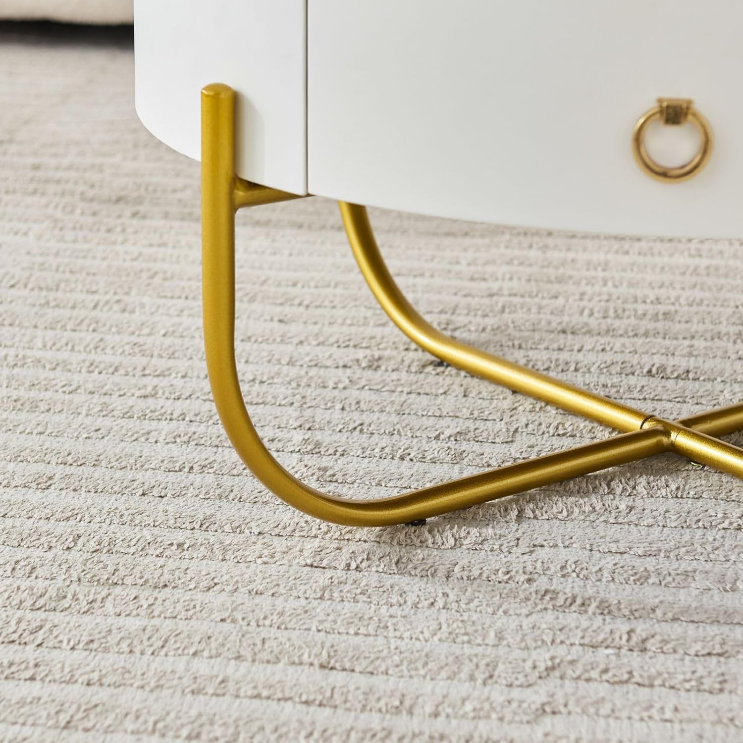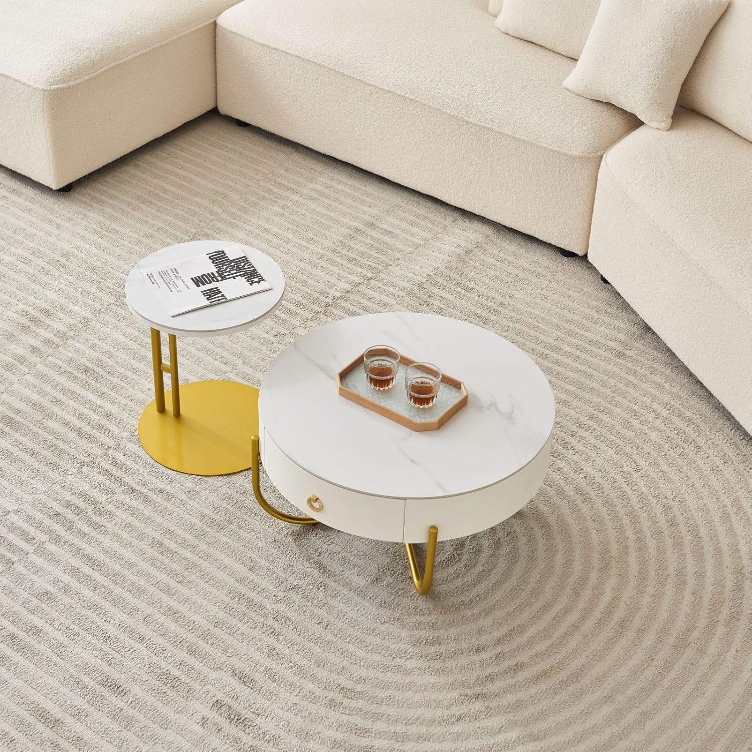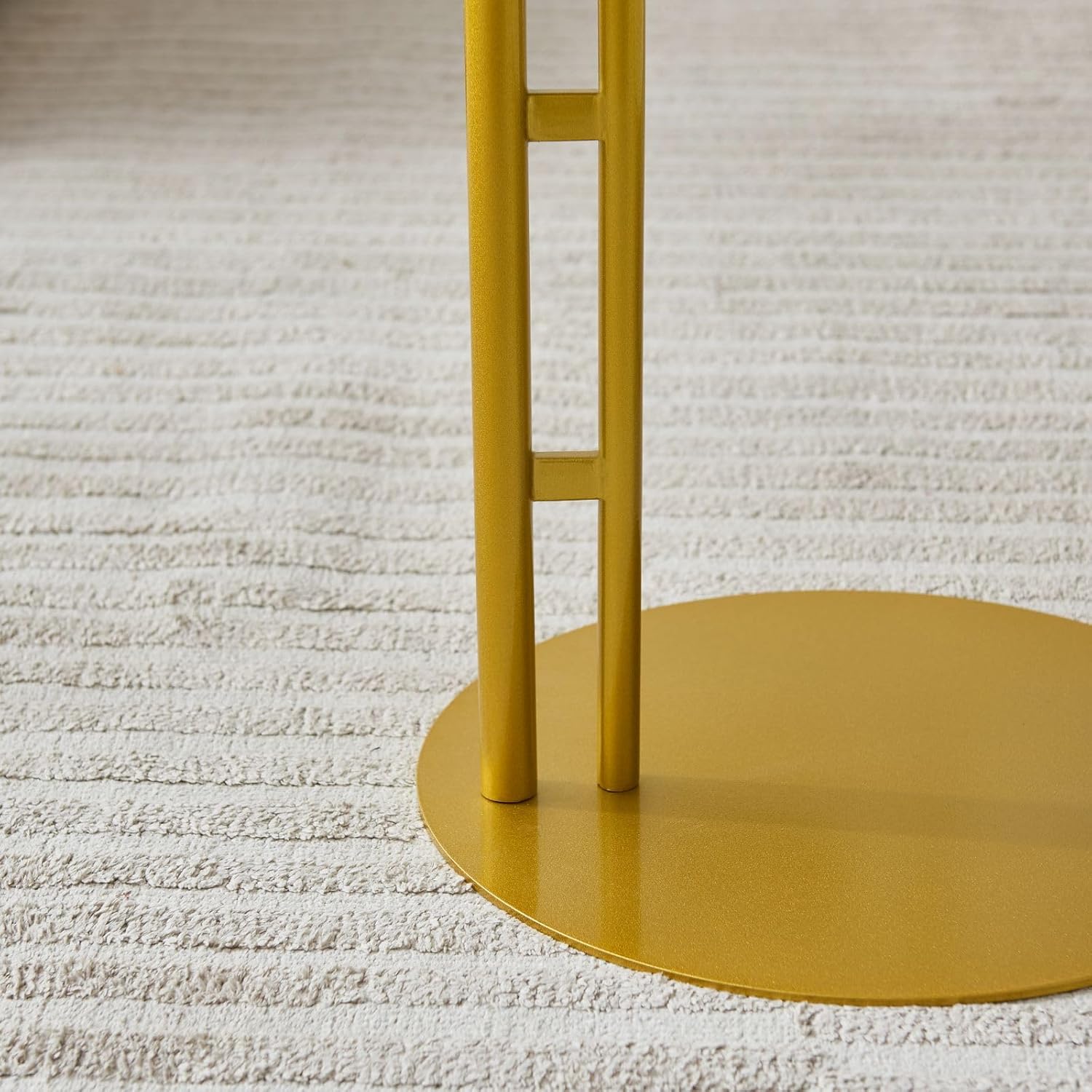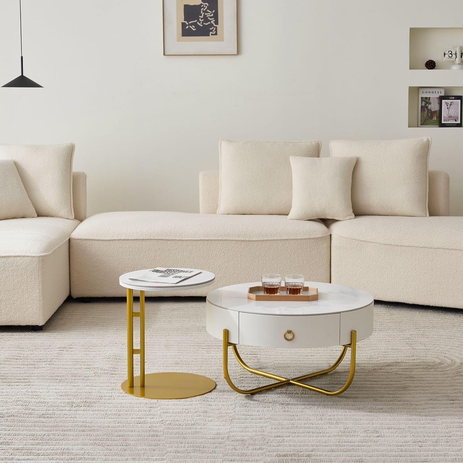 Round Coffee Table Set of 2 End Table for Living Room, 2-Piece Modern Round Coffee Table Set Easy Assembly Nesting Coffee Tables Accent Furniture Tea Table with Metal Frame Bedroom Gold