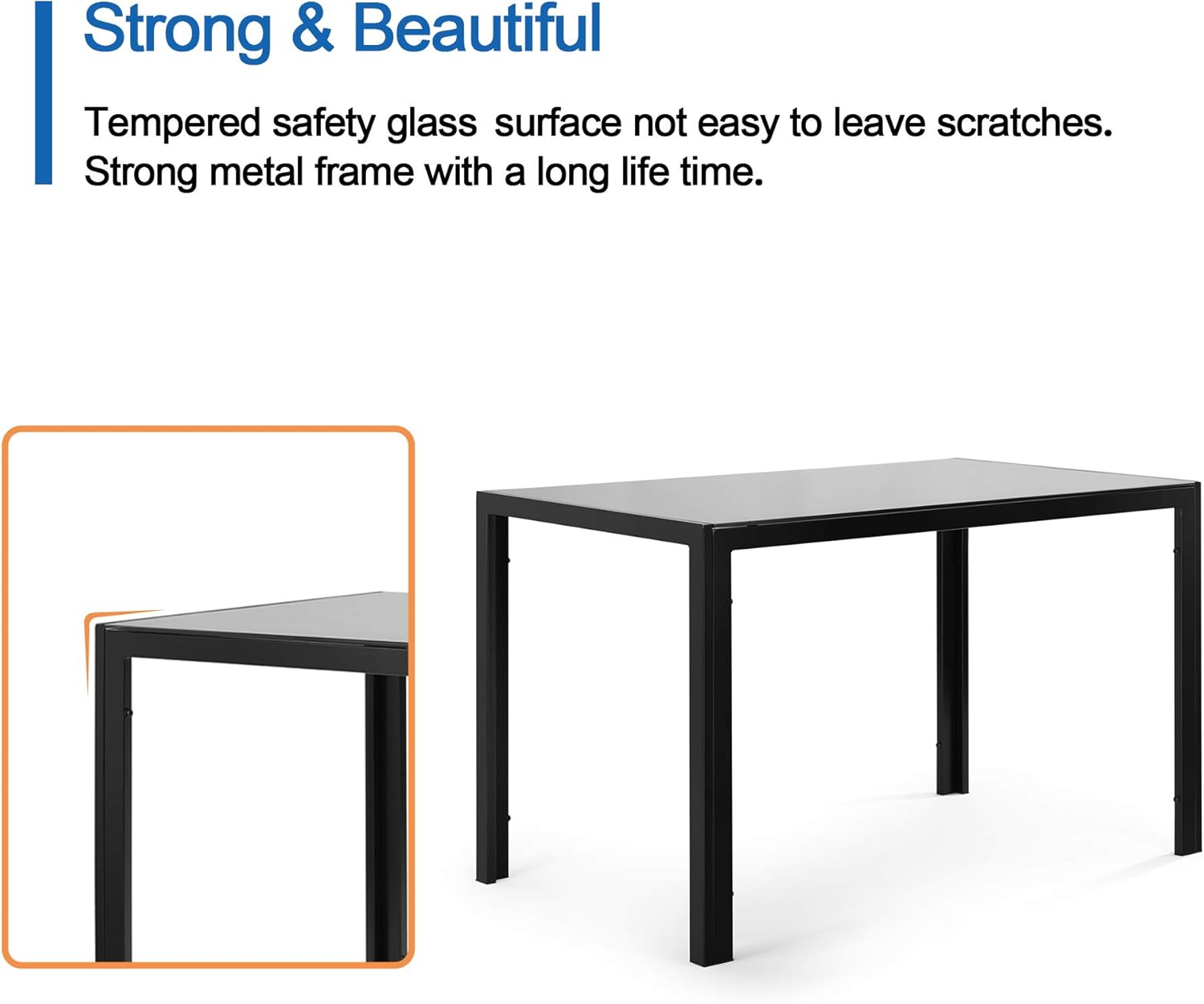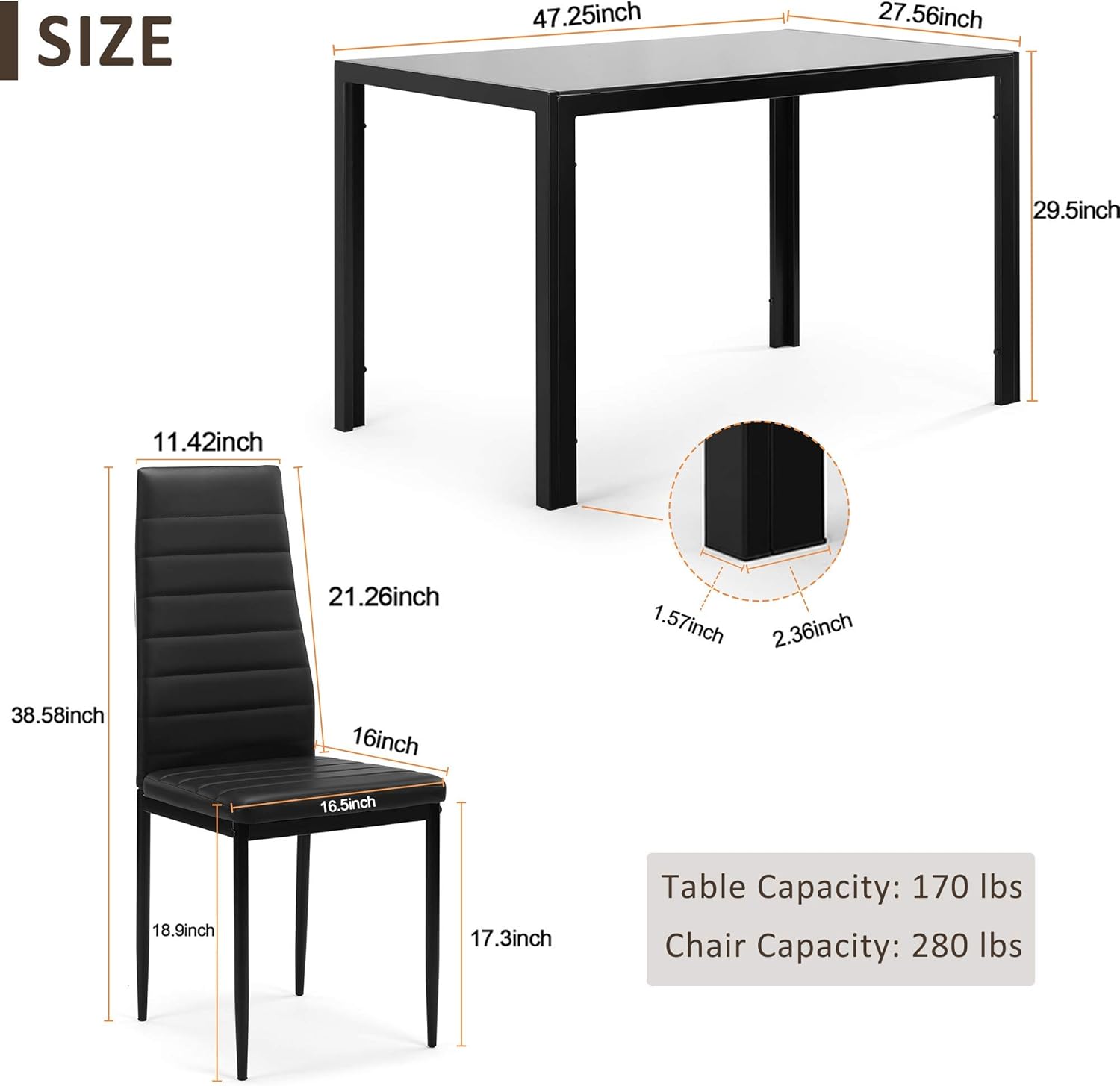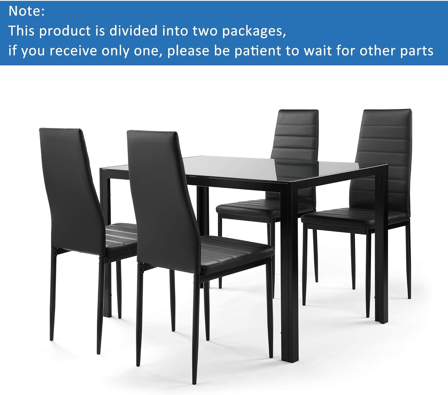 JOYBASE 5 Piece Dining Table Set, Tempered Glass Top Table with 4 Leather Chairs, Kitchen Dining Furniture, Black