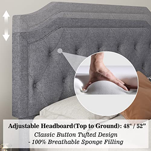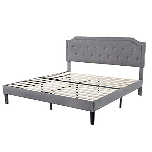 Allewie Upholstered King Size Platform Bed Frame with Adjustable and Curved Corner Design Headboard, Easy Assembly, No Box Spring Required, Light Grey
