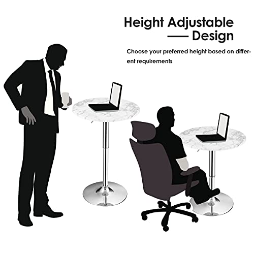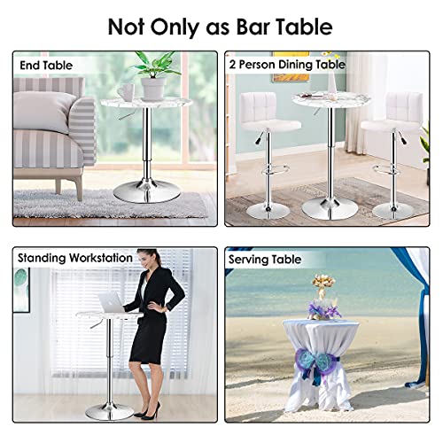Giantex Round Pub Table Height Adjustable, 360° Swivel Cocktail Pub Table with Sliver Leg and Base for Home, Bar Table(4, White)