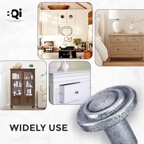 BQI Architectural Antique Brass Door Knobs for Cabinets and Drawers | Pack of 6 | Solid Furniture Hardware Knobs, Modern Dresser Pull Knobs for Kitchen/Bathroom/Hotel/Bedroom, Fancy Knobs-Nickel