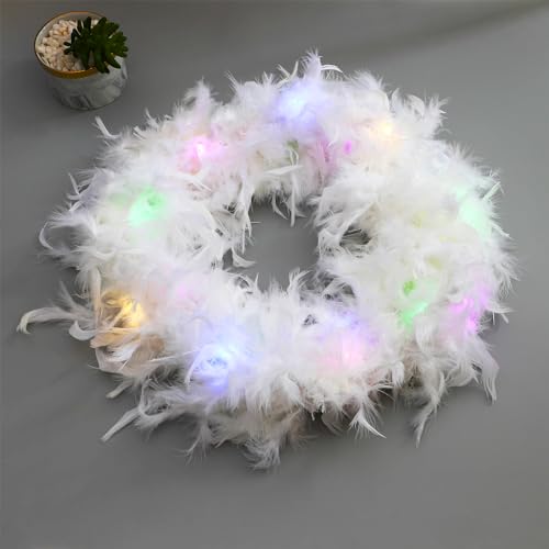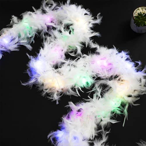 4.4 Yards 40G LED Feather Boa for Craft Home Party Costume, 4 Pcs Turkey Feather Boas, LED Light