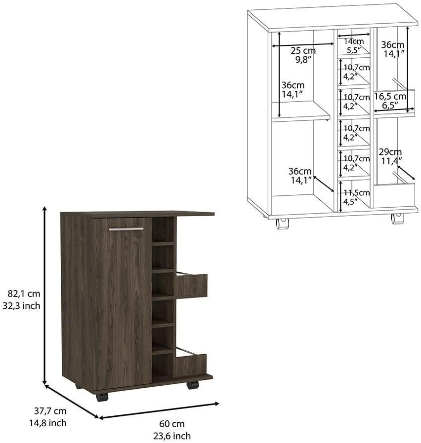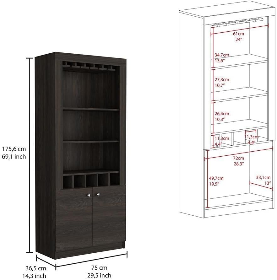Tuhome Furniture Cheshire 2-Piece Living Room Set with Bar Cabinet and Coffee Table, Espresso